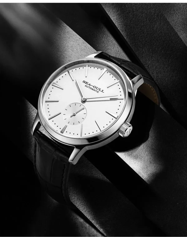 Introducing the Seagull New Business Watch: a beacon of modern sophistication and mechanical excellence. This minimalist automatic watch is designed for the discerning gentleman who values both form and function. Crafted with meticulous attention to detail, it combines the timeless allure of mechanical watches with contemporary design.
